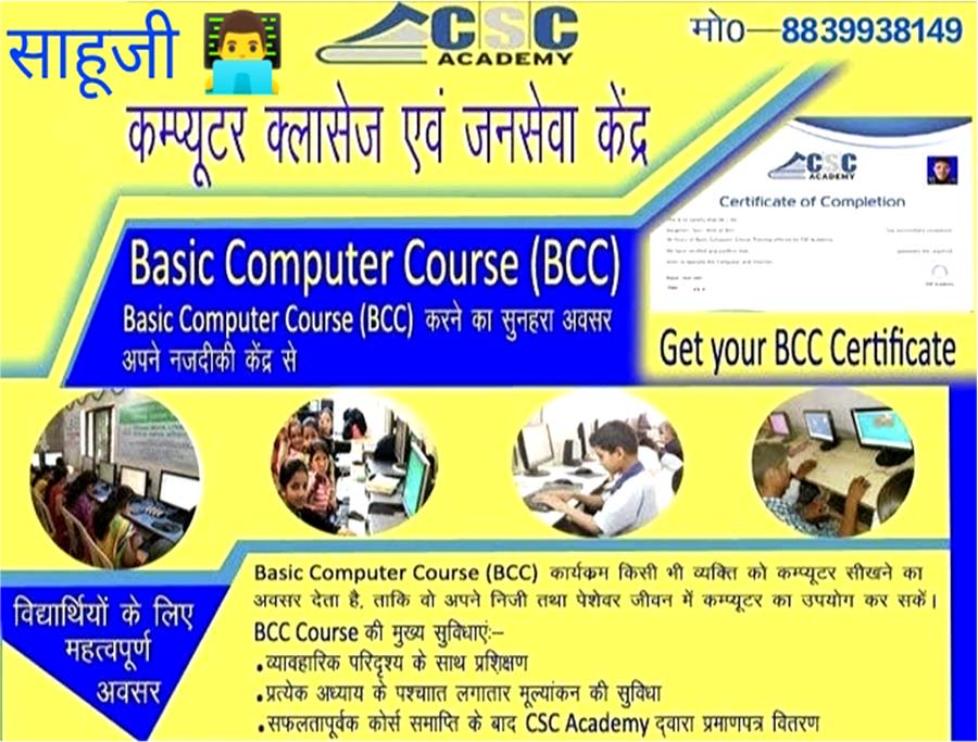 Csc academy offerred basic computer course opportunity for everyone after completed this course you get your certificate on this portal